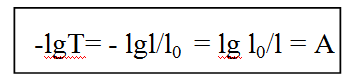 Взятый с обратным знаком логарифм Т называется оптической плотностью А: