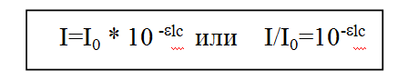 Уменьшение интенсивности света при прохождении его через раствор подчиняется закону Бугера – Ламберта – Бера: